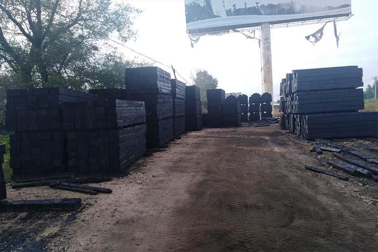 3、矿用油浸枕木装车时,每摞轨枕之间塞两块三角楔木,防止轨枕运输过程中碰撞、损坏。